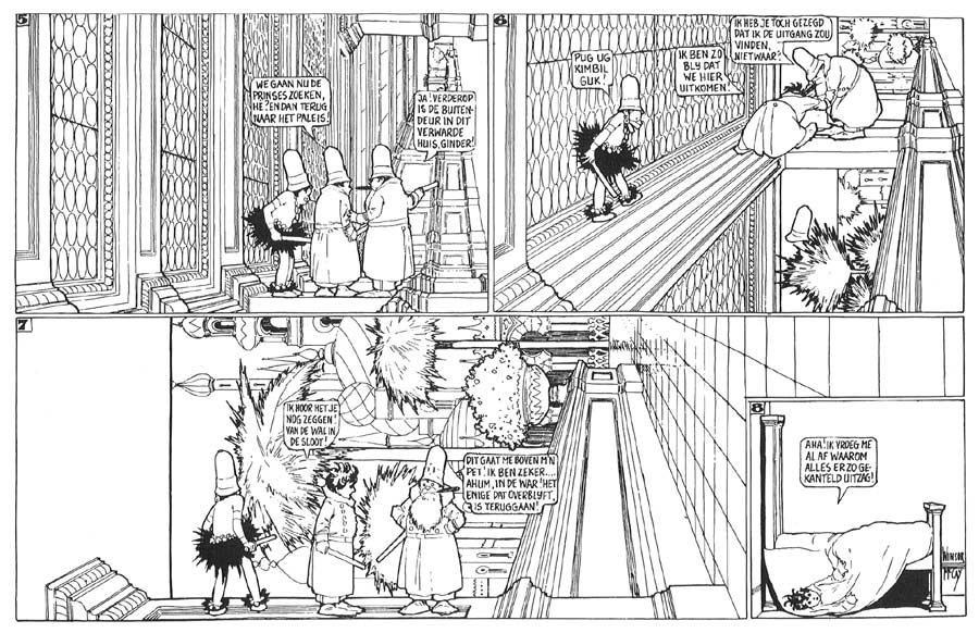 It's a delightfully drawn cartoon depicting three characters clambering over a world rotated through ninety degrees. I haven't a clue what the dialogue says, if anybody could translate it for me and add some notes to the flickr.com images I'd be very grateful.