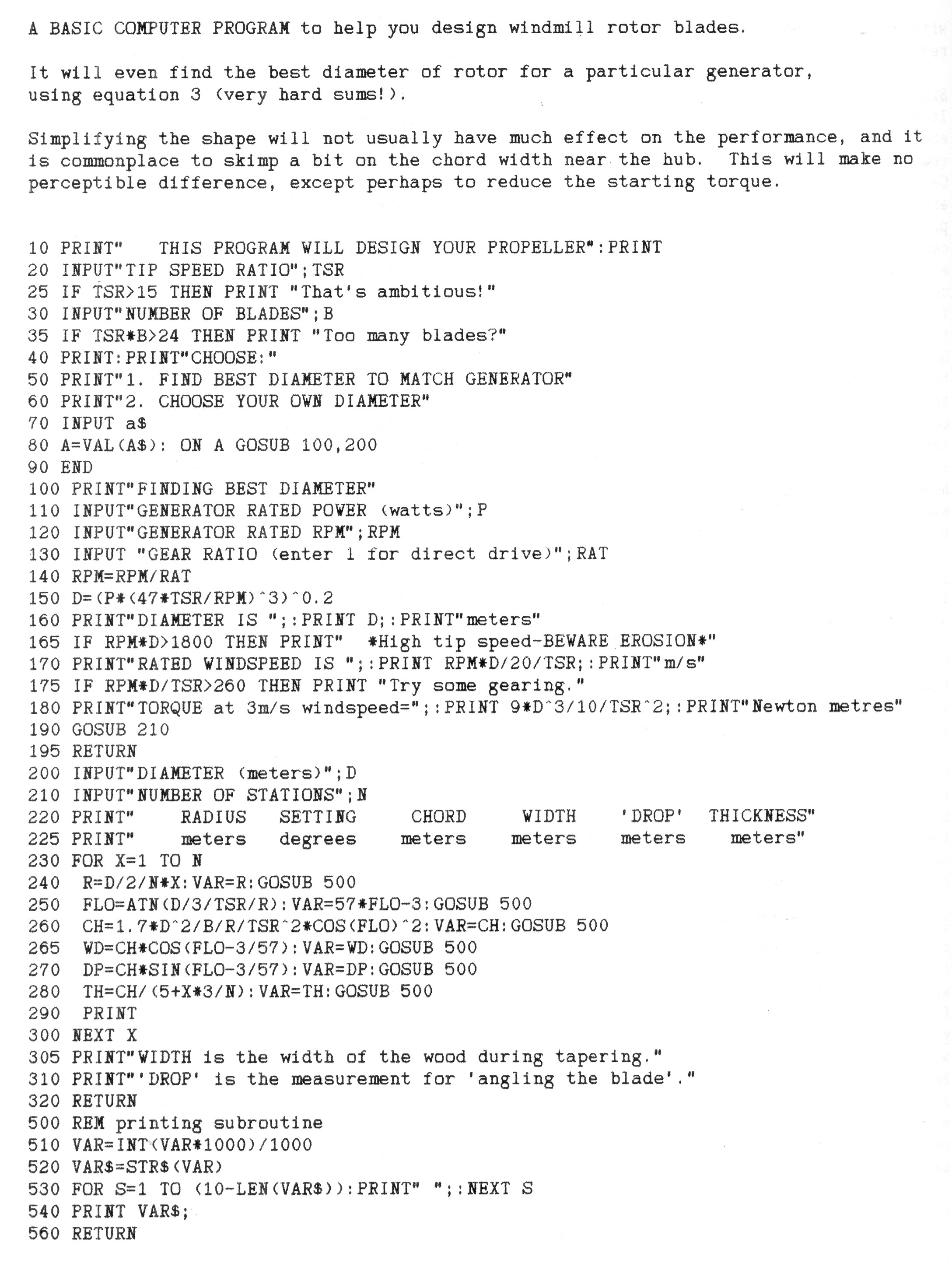 basic turbine 05 March 2008 Filed under: design, environment, practice Found on a dusty shelf... Scrapyard Windpower Realities: Building Windmills with Recycled Parts by Hugh Piggott (1992) Complete with diagrams: And Basic computer program to help you design the blades: