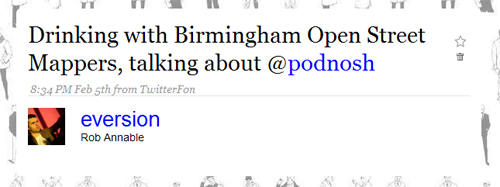 "It's very satisfying to see a complete city mapped in OpenStreetMap. Four years ago when this project was created we were looking at a blank screen and most commentators thought we were crazy." said Andy Robinson, secretary of the OpenStreetMap Foundation and a prolific mapper in the West Midlands.Quite. There's also a video available on the group's Mappa Mercia site of Andy and his fellow mappers drawing their traces all over our city during the last two years. So now we have a map. What do we do with it? Anything we damn well want of course, which is precisely the point. The possibilities for community driven cartography explorations are endless. Anecdotal, human, personal and empowering marks to be made over a map that boasts a greater accuracy than any other online or satnav maps. I look forward to deploying it, adding to it and promoting it. I'm going to start with the reason I was talking about @podnosh in the tweet from the pub - it's time we included it in one of the other innovative online communities we have here in Brum: the Social Media Surgery.
